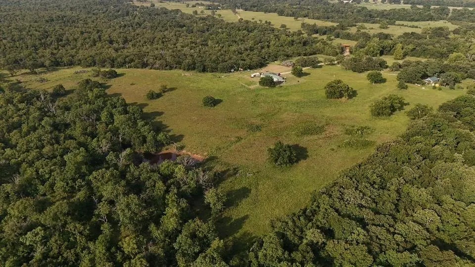 2 HOUSES AND 160 AC M/L. Total Seclusion! Looking for peace and quiet, a place to call your own, privacy? This property has a 3/4 mile private drive with all of the perks. 2 homes. The original homestead has a great floor plan, storm shelter, dog kennel, tons of outbuildings, mature trees, large Pine trees, house needs some updating. Also located on this property is a 1250 sq ft m/l barndominium built in 2008 with 2 bed, 2 bath and oversized attached 3-car garage. Home features an open kitchen/living area with plenty of cabinet and counterspace, dining area, large pantry and wood stove for living area. Two nice size bedrooms, large main bath, primary suite features soaker tub and walk-in closet. This property has a covered front porch the length of the house, nice place to look at the beautiful Oklahoma sky! There is a good mixture of hunting and pasture (pastures have been previously baled), lots of deer, turkey and native Oklahoma wildlife. 3 stocked ponds a 1600 sq ft barn structure, more outbuildings, private well, septic. This property has so much to offer! Words don't do it justice, come take a look!