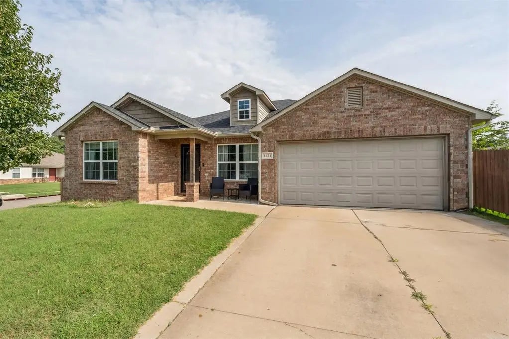 Welcome to Rose Rock Estate, this unique and versatile 4-bedroom home sits on a spacious corner lot. Walking through the front door you are greeted by a bright and inviting main living space that flows seamlessly into an open kitchen space. The primary has its own side with a full bath and large walk-in closet. On the other side of the home, you have 3 guest bedrooms with a sharing full bath. Back yard has a full privacy fence, and the 2-car garage has a built-in storm cellar. Not many 4 bedrooms left in the area so schedule your showing today.