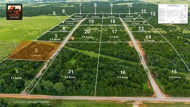 Discover Coyote Canyon — wide open skies, room to roam, and country living done right. Lot 2 offers 2.5 acres of peaceful rural living, situated just 1 hour from both OKC and Tulsa, and only 30 minutes from Stillwater. Whether you're building a custom home or planning a brand-new manufactured home, Coyote Canyon gives you the freedom to create your ideal homestead. With no HOA, residents enjoy independence while sharing responsibility for road upkeep—fostering both self-reliance and a sense of community. Utilities will need to be established, giving buyers the flexibility to build exactly what they need from the ground up. Listing agent is a member of the LLC that owns this property. Oklahoma License #175469.