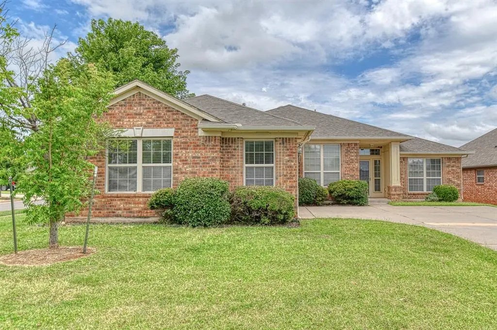 Light, Bright, and welcoming is the vibe you'll find when stepping into this lovely 3-bedroom home! The formal dining room to the right of the entry could also be used as a flex space for whatever suits your lifestyle! The kitchen is chef-ready with clean appliances, including a refrigerator, dishwasher, and smooth surface cook range for easier clean up! The large walk-in pantry is nice to have as well! The breakfast bar overlooks the well-lit living area and stunning gas fireplace, so cooking and entertaining are made easier! The primary suite offers a large double vanity, soaking tub, stand up shower, and large walk-in closet! The unique large window in the swing-around garage is not something you'll find every day! The home is situated on a corner lot in Somers Pointe, a quiet neighborhood that offers a splashpad and playground for outdoor enjoyment in the popular Mustang school district. Don't let this gem get away!
