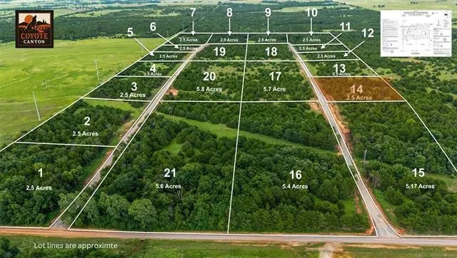 Discover Coyote Canyon — wide open skies, room to roam, and country living done right. Lot 14 offers 2.5 acres of peaceful rural living, situated just 1 hour from both OKC and Tulsa, and only 30 minutes from Stillwater. Whether you're building a custom home or planning a brand-new manufactured home, Coyote Canyon gives you the freedom to create your ideal homestead. With no HOA, residents enjoy independence while sharing responsibility for road upkeep— fostering both self-reliance and a sense of community. Utilities will need to be established, giving buyers the flexibility to build exactly what they need from the ground up. Listing agent is a member of the LLC that owns this property. Oklahoma License #175469.