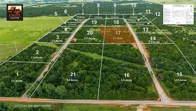 Discover Coyote Canyon — wide open skies, room to roam, and country living done right. Lot 17 offers 5.67 acres of peaceful rural living, situated just 1 hour from both OKC and Tulsa, and only 30 minutes from Stillwater. Whether you're building a custom home or planning a brand-new manufactured home, Coyote Canyon gives you the freedom to create your ideal homestead. With no HOA, residents enjoy independence while sharing responsibility for road upkeep— fostering both self-reliance and a sense of community. Utilities will need to be established, giving buyers the flexibility to build exactly what they need from the ground up. Listing agent is a member of the LLC that owns this property. Oklahoma License #175469.