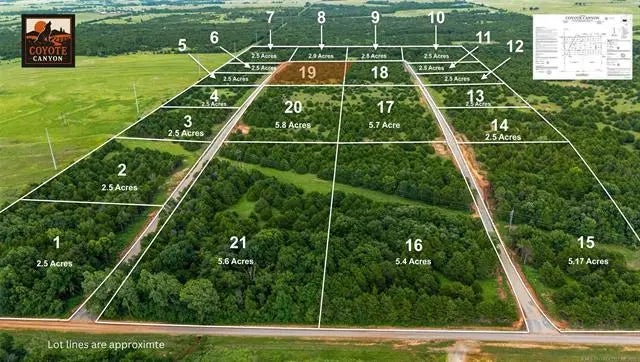 Discover Coyote Canyon — wide open skies, room to roam, and country living done right. Lot 19 offers 5.9 acres of peaceful rural living, situated just 1 hour from both OKC and Tulsa, and only 30 minutes from Stillwater. Whether you're building a custom home or planning a brand-new manufactured home, Coyote Canyon gives you the freedom to create your ideal homestead. With no HOA, residents enjoy independence while sharing responsibility for road upkeep— fostering both self-reliance and a sense of community. Utilities will need to be established, giving buyers the flexibility to build exactly what they need from the ground up. Listing agent is a member of the LLC that owns this property. Oklahoma License #175469.