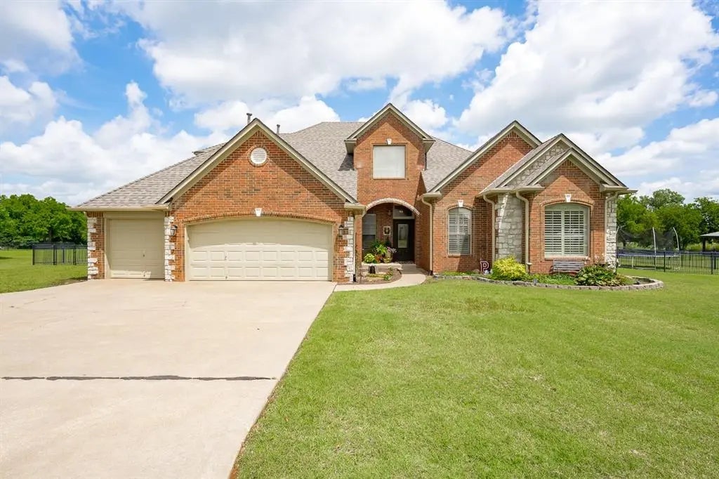 Golf Course Living - No HOA! This beautiful home offers 3,747 sq. ft. with 5 bedrooms, 3 bathrooms, a 2-car garage, additional golf cart bay & storm shelter. The home is filled with natural light, soaring ceilings, and stylish finishes throughout. The main level features two large living areas, a formal dining area, a private office with built-in cabinetry, and three generously sized bedrooms—including a spacious primary suite with a walk-in closet and en-suite bathroom. The well-appointed kitchen is both functional and inviting, offering ample counter space, a center island, breakfast nook, stainless steel double ovens, and a seamless connection to the dining and living areas - perfect for entertaining or everyday living. Upstairs provides even more flexibility with three additional bedrooms. The optional6th bedroom could serve as a home theatre, media room, or spacious family room. Step outside to enjoy the large, fenced backyard with a lovely covered patio overlooking the #2 fairway of Perry Golf & Country Club. Recent updates include a new roof, guttering, stainless steel dishwasher, and garbage disposal in 2024; a new hot water tank, exterior soffits, and upstairs AC unit in 2023; and stainless steel double ovens, stainless steel low-profile microwave, full interior repaint, updated bathroom faucets downstairs, new front door, and backyard metal fence in2020. 30 minutes from Stillwater and OSU, with easy access to both OKC and Tulsa. No HOA. Schedule your showing today for this exceptional home!