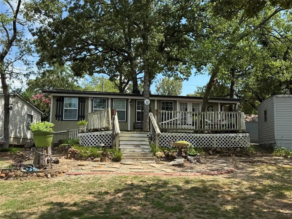Lakefront getaway on Wewoka Lake! This long-time family-owned property offers unbeatable views, a private 12x20 dock shared with the neighbor to the east, a 10x20 wood deck to the house, and a custom fire pit by the water where many hours are spent with family and friends. The owner cleared rocks by hand and rake, creating a sandy-bottom swim area about 4 feet deep — perfect for summer fun. Enjoy skiing, jet skis, houseboats, and great fishing. Home features two bedrooms (possibly 3rd), a full kitchen, an add-on for more living space with several windows for the lake views, and a one-of-a-kind live tree centerpiece with epoxy windows. Metal roof, commercial gutters, carport, storage shed, and mature Shade trees. It is peaceful, private, and easy to show lot size approx 47x106. Home has it's own septic system. Shared water well with the E neighbor. Buyer to verify square footage. Why wait? Call today!