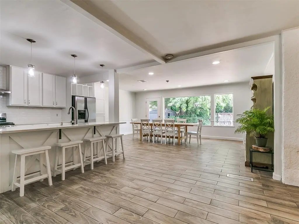 This completely remodeled home offers stylish modern living with quality updates throughout. The luxury kitchen features a farmhouse sink, premium finishes, and an open floorplan that connects seamlessly to the main living areas, making it ideal for both daily life and entertaining. Bathrooms have been fully updated with contemporary fixtures, and newer windows bring in abundant natural light. The two-car attached garage includes a below-ground storm shelter for added peace of mind. Out back, a decorative stone patio provides a great space for relaxing or gathering. Centrally located in a wonderful neighborhood with mature trees, the home is just minutes from parks and shopping.