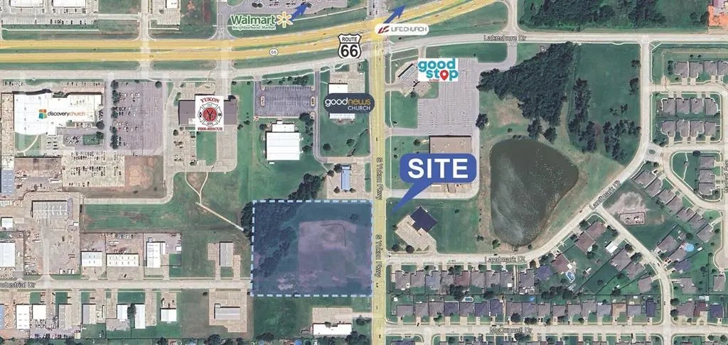 Approximately 4.26 acres available just off of Route 66 in Yukon. Property is currently zoned C-3 Commercial use- can be rezoned for multifamily homes. Potential uses include commercial, retail and/or multifamily homes. Easy access to I-40, John Kilpatrick Turnpike and Will Rogers Airport. Public utilities available nearby. Preliminary PUD available upon request!