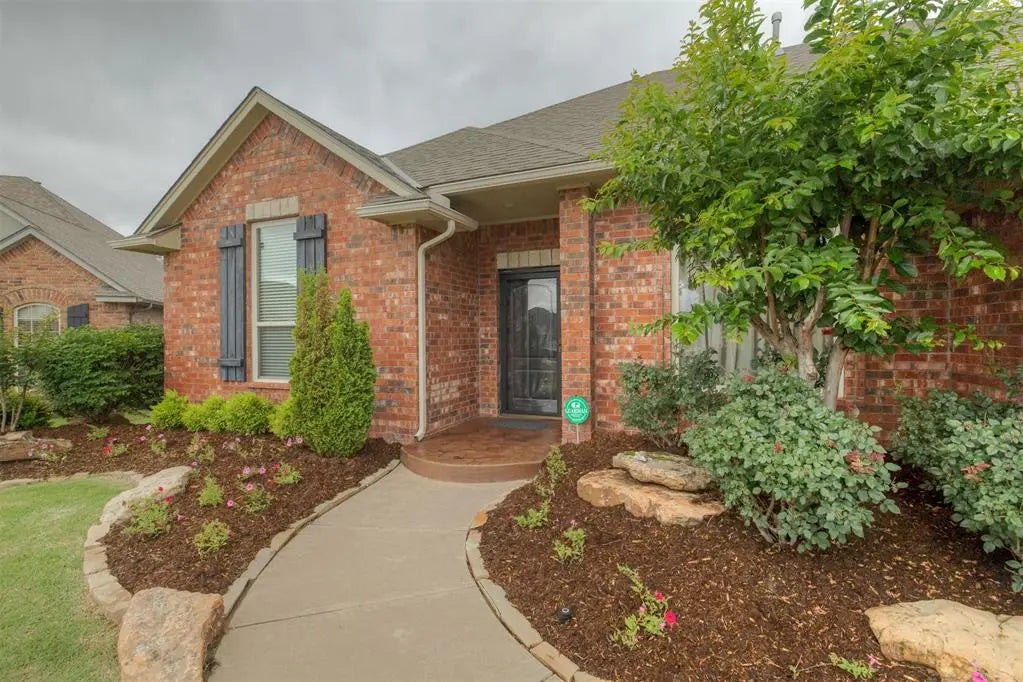 Beautiful and well kept one owner Crabtree home in Yukon's desirable Kingsway Addition. Fantastic floorplan with wood flooring in entry, formal dining and hallway. Brick and stone gas fireplace in living room. Gorgeous granite kitchen with island,5 burner gas cooktop, granite composite sink, tumbled marble backsplash, built-in desk, in-wall oven and microwave. Spa-like primary retreat with double vanity, whirlpool tub, mounted tv, tile shower, roomy wrap around closet and private water closet. 2nd and 3rd beds are oversized with custom deploy shelves and great closets. 4th bedroom with closet makes great study/home office. Formal dining with custom rug and drapes. Awesome utility room, mud bench. 2 inch blinds through-out. Hard wired surround sound system and mounted TVs remain with property. HUGE back patio, stained concrete, storage shed, double gate. In-ground storm shelter in garage, garage doors with automatic openers. Guttering, landscaping, storm door, sprinkler system, decking in attic. BUYER TO VERIFY SCHOOLS.
