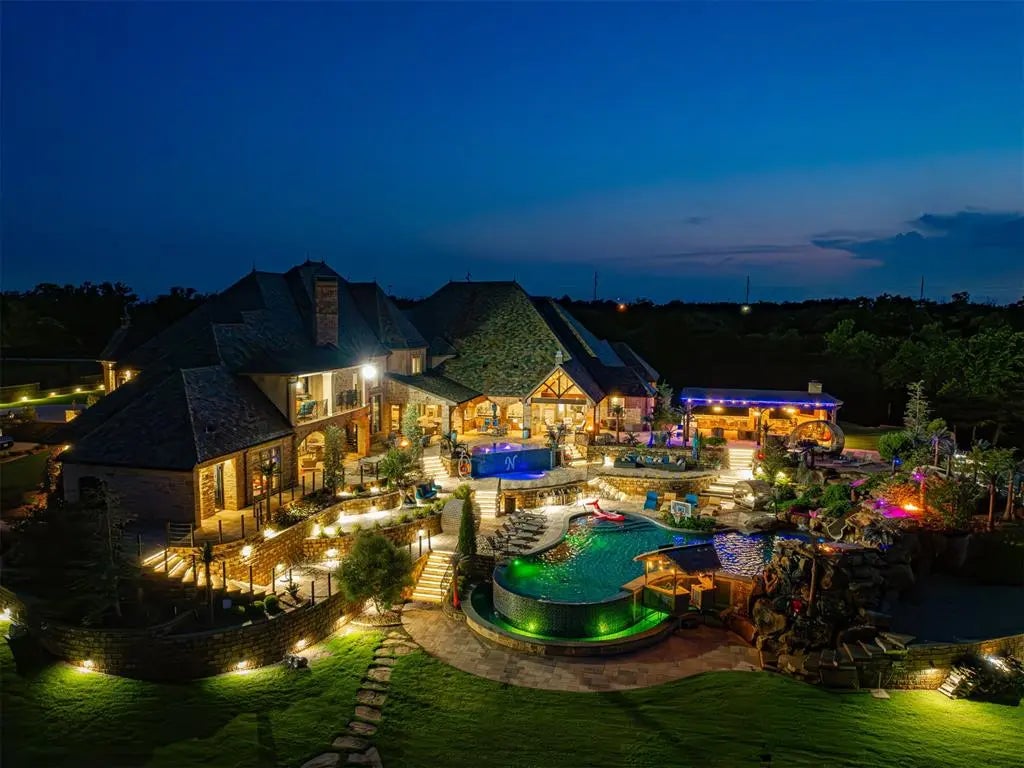 ULTRA LUXURY ESTATE in OKC! Welcome to an unparalleled sanctuary of luxury and sophistication. This one-of-a-kind gated estate, set on 36 breathtaking acres, offers an extraordinary 19,000 square feet (MOL) of meticulously crafted living space. This home comes furnished (with some reserved personal items). The property's outdoor amenities are nothing short of spectacular. A resort-like 70,000-gallon pool, complete with a slide, grotto, and expansive hot tub, serves as the focal point of multiple outdoor living areas. Entertain effortlessly with a full outdoor kitchen and a private, stocked pond, all within the security of a gated entry. Savant Home Automation ensures state-of-the-art control and convenience throughout the estate. This exquisite property features a stunning koi pond, home to over 200 brightly colored koi fish. Other amenities: electric shades, generator, hidden staircases, multiple bar areas, golf driving balcony, fireman's pole from kids gaming area to kitchen, etc. Indoors, the residence boasts dual professional bowling alleys, a game room, a large office suite, and soaring ceilings. A $6M 32,000-square-foot barn (heated & cooled and NOT included in sf)) elevates the property further, featuring an indoor basketball court, a full outdoor basketball court (outside of the barn), multiple bar areas, a dance floor, and a performance stage. The barn includes 33 oversized car garages, providing plenty of space for car collectors and extra storage. This entertainment hub even includes an elevator for ultimate convenience. 2 oversized his/hers bedroom suites are also inside barn. Experience a lifestyle of unparalleled luxury and distinction in this remarkable estate, where every detail has been thoughtfully curated for the discerning homeowner. Professionally decorated with custom furniture from all over the world! The home currently has a full-time live-in house manager that runs the entire property.