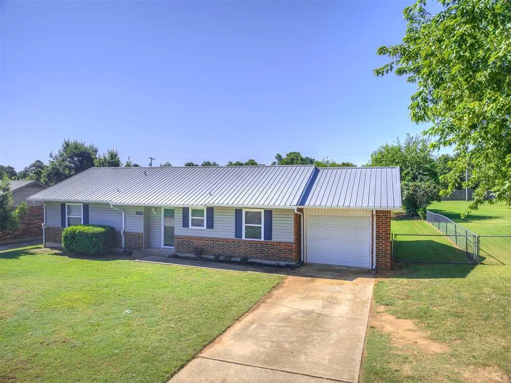 This charming 3-bedroom, 1.5-bathroom home is located in the desirable Choctaw School District and is situated on a spacious third of an acre lot. It is conveniently located within walking distance or a short drive to the new Choctaw High School and is just minutes away from various shopping and dining options. This home is ideal for a growing family and boasts recent updates, including a fresh coat of paint throughout. The home has a storm shelter and a large outbuilding for storage. The interior features a walk-through galley kitchen with ample space for a kitchen table, as well as a generously sized living room that seamlessly opens up to the backyard. The oversized one-car garage offers both storage and parking space. Each of the three bedrooms is well-proportioned and includes ample closet space, with the master bedroom featuring a convenient half ensuite bath. The property's location offers easy access to I-40 and the Turnpike, which are only 10 minutes away, and Tinker Air Force Base is just a 15-minute drive.