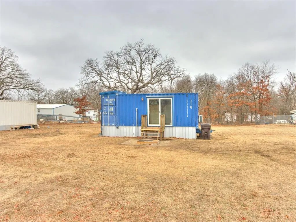 Custom-Built Tiny Container Home located on 1 acre in Norman. Features an Open Studio style floor plan. Bedroom located on one end which will fit a queen-sized bed. Kitchenette on the other end with 1 electric burner, a sink with cabinet, some storage and room for a refrigerator. Bathroom offers a full-sized tub/shower combo with bathroom vent, sink, cabinet and wall heater. 220-amp tankless hot water heater. The home features a brand-new mini split for heat and cooling. The 2nd container is an 8 x 40 hi cube for plenty of storage space along with a washer and dryer inside. The acre lot is fully fenced with chain link. Chicken coop and a fenced pen located at the back of the property. The home is on a custom-built trailer for hauling but is currently tied down. Unlimited water is $50 per month with $15 going to the HOA. Trash service is available for $35 per month. The South Dam Boat Ramp at Lake Thunderbird is only 4 miles away. This compact and efficient home offers a unique experience living in a rural setting. There are so many options for gardening, horses, boat storage or future expansion. Property owner is a licensed agent #211374.
