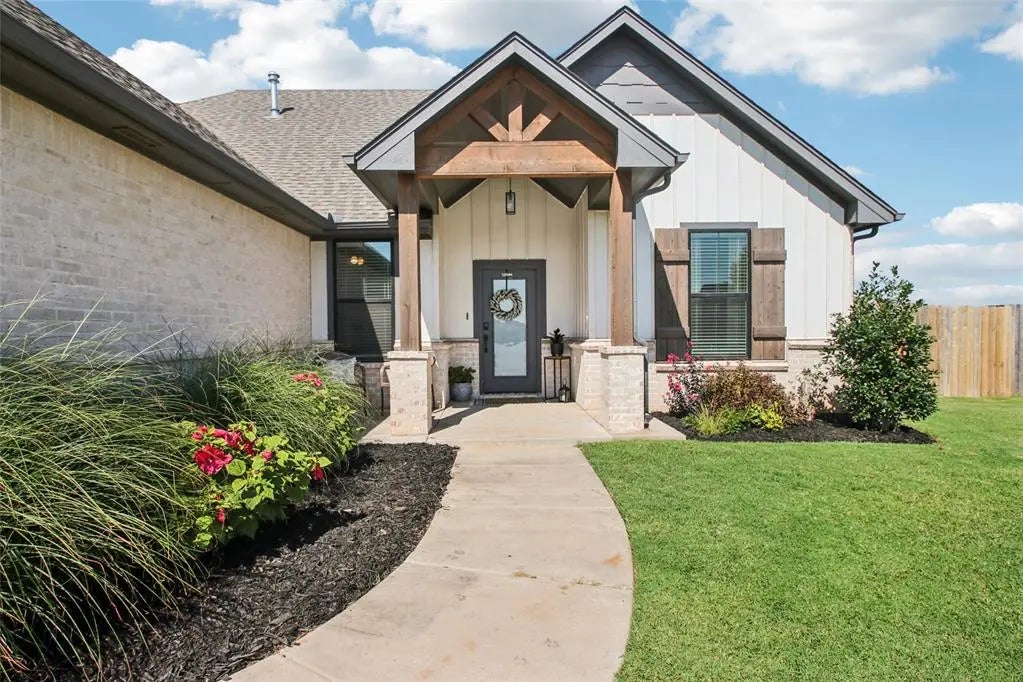 Outdoor living is just as inviting with a covered front entry and a spacious covered back patio ideal for entertaining or relaxing. A 3 car garage with a storm shelter provides plenty of parking and storage. The yard has full sprinklers and fencing. This home truly blends comfort, style, and convenience in an exceptional location with quick access to both I-40 & the Turnpike.