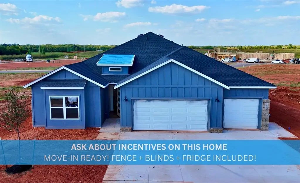 LIMITED INCENTIVE - Ask for details. Welcome to Anthem, the newest premier community in Deer Creek. Thoughtfully designed with flexibility in mind, Anthem offers a wide variety of curated floor plans, making it easy to build a home that fits your lifestyle-whether you're upsizing, downsizing, or buying your first home. The Pagosa Modern Farmhouse design exemplifies this vision, blending timeless comfort with modern sophistication. Design home, set on a single level, is meticulously crafted to accommodate the rhythm of modern living. The expansive living room features a sleek linear electric fireplace, serving as an elegant focal point while creating a warm and inviting ambiance. At the heart of the home is a chef-inspired kitchen. Outfitted with a freestanding gas range, quartz countertops, refrigerator, and under-cabinet lighting, this space is both visually stunning and expertly designed for effortless meal prep and hosting. Retreat to the private primary suite, the spa-like en-suite bathroom boasts walk-in shower, dual-sink vanity, and a generous closet, offering both luxury and practicality. The secondary bedrooms are equally inviting, each featuring walk-in closets and expansive windows that flood the space with natural light. Anthem welcomes you with options that feel just right. Every detail has been carefully considered to create a move-in ready experience, including a fully fenced yard with gate, zoned irrigation system, tankless water heater, post-tension engineered foundation, and stylish white faux wood blinds throughout. Anthem’s unmatched community amenities enhance daily living, featuring a resort-style pool, outdoor recreation area, basketball court, playground, and pickleball court. All just minutes from top-tier Deer Creek schools & with convenient access to Oklahoma City’s best dining, and entertainment. Stop by and check out the Model home at 17920 Anthem Blvd Sat 10a-6pm, Sun 1pm-6pm & Mon-Thurs by appointment. Welcome Home!