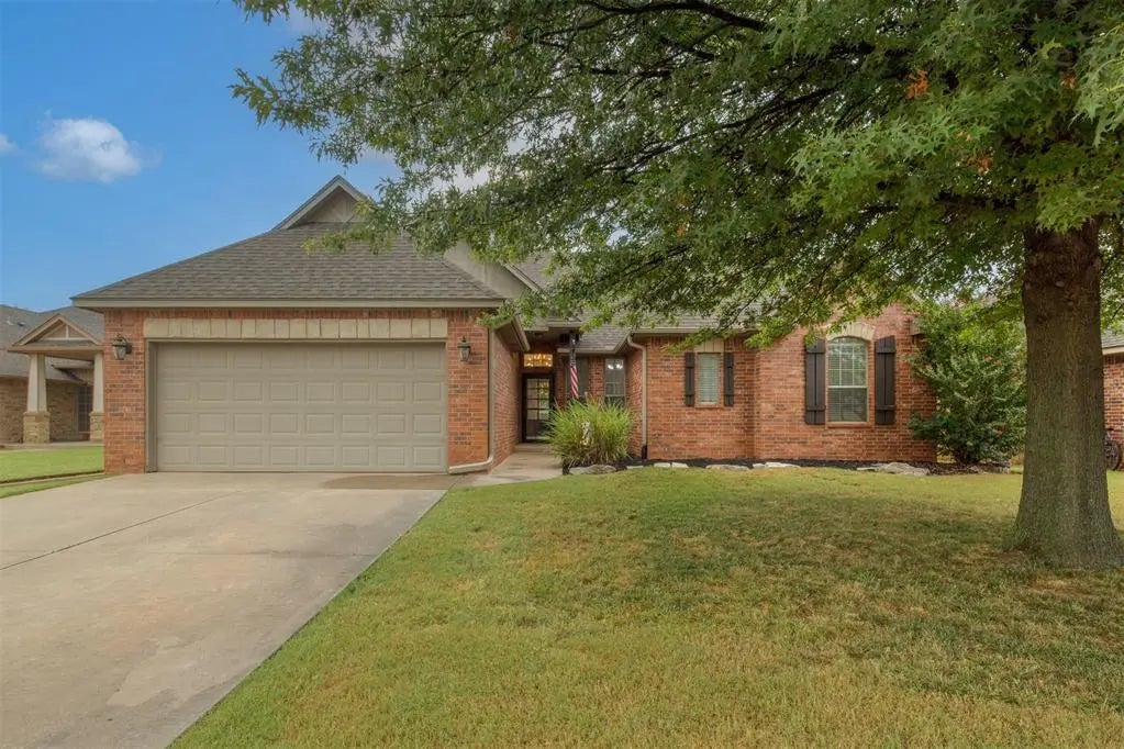 Charming four bedroom home in west Edmond boasts floor-to-ceiling windows providing peaceful views of the expansive backyard and lots of natural light! This home offers a private primary suite on one side of the house, with three more bedrooms on the other side. This home is nestled on a quiet, dead-end street with low traffic. The entire home has just been FRESHLY PAINTED throughout and a brand new High Efficiency Trane XR HVAC system installed 2024! Updated tile flooring, very little carpet. All new interior doors, new kitchen sink, stove and dishwasher replaced in 2021, new tile and cabinets in laundry room. Roof and hot water tank replaced in 2020. Walk-in pantry providing ample amounts of shelving. Step outside to a large covered back patio where you find a very well-maintained, large backyard with a mature tree and a storage shed. Retreat to the serene primary suite with a quaint sitting area and direct access to the private back patio. Primary walk-through closet offers lots of storage and shelving. Location! Location! Quail Springs Mall and Highland Park shopping center are minutes away offering restaurants and coffee shops. This home has been very well maintained and is truly move in ready!
