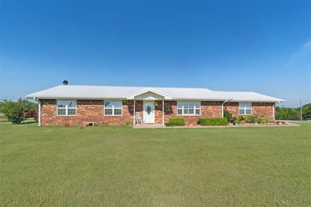 This beautifully maintained 3-bedroom, 2-bath home sits on just over 9 acres at the corner of Carpenter Place and Highway 177, offering both convenience and privacy. The spacious interior includes a custom kitchen with granite countertops and a French door refrigerator that remains with the home. The main living area features a cozy gas fireplace and updated laminate flooring installed in 2022. The primary suite boasts a large walk-in shower and a double vanity, while fresh paint and abundant storage enhance the home's appeal throughout. A heated and cooled sunroom provides additional living space perfect for year-round enjoyment. Outside, the property is well-equipped with a fenced backyard, two ponds, and cross-fencing suitable for livestock. Additional amenities include a nearby storm shelter, a concrete-floored shed with electricity and a loft, and a drive-through shed for added utility. This property blends rural charm with modern comfort—truly a must-see.