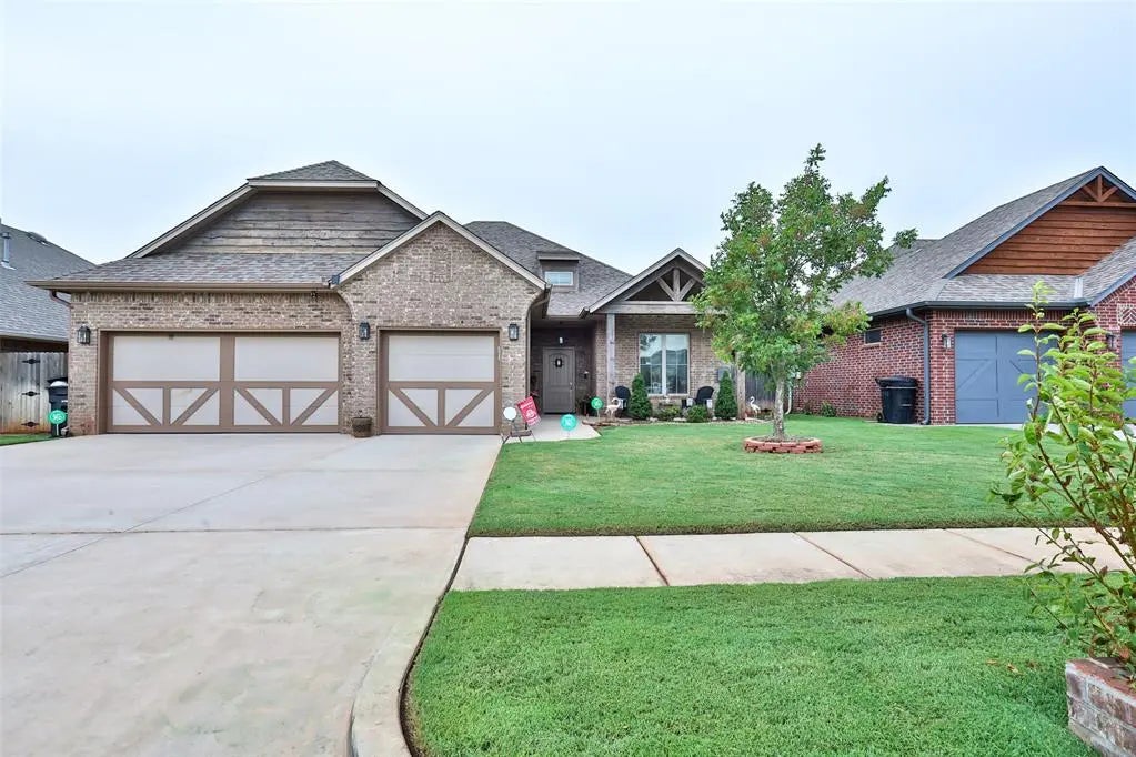 Wow! Take a look this beautiful home that has a ton to offer. Open concept home is a split floor plan where secondary and primary bedrooms are separate from each other. Living room and kitchen huge, providing lots of natural light along with plenty of cabinet and counter space. Kitchen also features additional counter space for your mixers, coffee machines, etc. Gas stove was replaced. Home has separate mud room / laundry area. Secondary bedrooms are of good size with one of the rooms features a Murphy bed. Primary suite features dual sinks, separate shower and tub along with huge walk in closet. As you walk in the home there is an additional flex room you can use (study, office, game room, dining room...your choice). Outdoor amenities include covered porch and patio, sprinkler system & fully guttered. Storm shelter located in garage. Easy access to I-35, I-240 and minutes away from Tinker AFB, downtown OKC and Norman. Call for your private showing today!