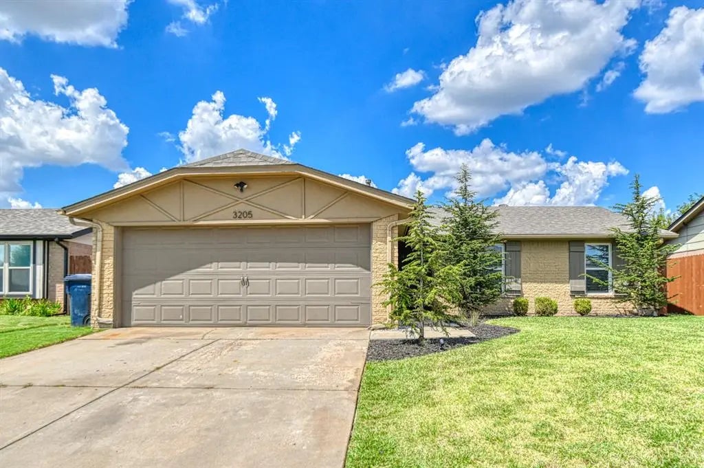 This BEAUTIFULLY updated 3-bedroom, 2-bathroom home offers 1,315 sq ft of stylish, functional living space and outstanding curb appeal with UNIQUE landscaping ~ Inside, you'll find contemporary touches like GRANITE countertops, stainless steel appliances—including a stainless steel REFRIGERATOR that stays—smooth top range with vent, a bar with extra seating and under-bar storage, modern lighting, and a COZY gas fireplace with a stunning wood mantel and tile surround ~ The home boasts hard flooring throughout, a tiled walk-in shower in the primary bath, and a fully updated guest bath with a tiled tub/shower combo ~ Additional features include a 2023 roof, FULL guttering, underground sprinkler system in BOTH the front and back yards, garage floor STORM SHELTER, indoor laundry room, and access to HIGH-SPEED internet and a security system ~ The backyard is perfect for entertaining or relaxing, and includes a play set that stays with the home ~ Located in the desirable MOORE school district and convenient to I-44, I-240, and a wide array of restaurants, shopping, schools, and more! Schedule your private showing TODAY!