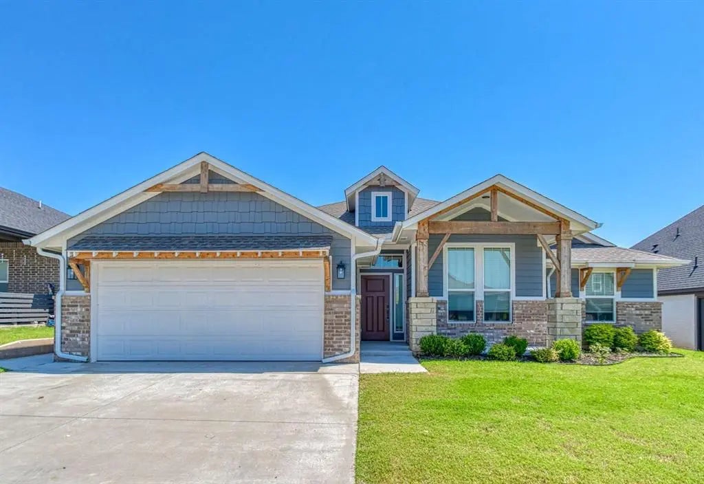 Stunning Craftsman style 3-bedroom home in the West Moore community of Native Plains! Come on into an open living/dining/kitchen space that is great for entertaining and comes with a cozy corner fireplace and lots of natural light from the numerous windows. The kitchen boasts quartz counters and island, built-in stainless appliances with gas range, and tile backsplashes! Retreat to the primary suite where you'll find a large walk-in closet, double vanities, soaking tub, and tiled walk-in shower! For outdoor enjoyment, you have a nice-sized covered porch for sitting and socializing, or a covered back patio for grilling out and relaxing! The extra concrete pad down the garage side of the home is convenient for hiding those pesky trash bins from street view! Neighborhood amenities include walking trails, ponds, and a playground. Owner licensed.