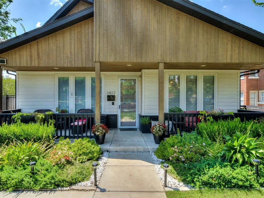 Designed with ease and comfort in mind, this single-level home is perfect for those seeking a forever home in the heart of the city. Step inside to a spacious living room with cathedral ceiling guaranteed to wow your guests, an electric fireplace, and tile floors throughout. The thoughtfully designed kitchen features an island with quartz countertops and room for seating, stainless steel appliances, gas cooktop, coffee bar, and a walk-in pantry. The dining area creates a spacious setting for gatherings, holidays, or casual entertaining. The primary suite has a spacious walk-in closet and provides a private ensuite bathroom with a walk-in shower, soaking tub, private toilet room, and dual vanities. There are two additional bedrooms, each with their own bathroom and walk-in closet. The office overlooks the front garden, while the backroom provides more privacy overlooking the backyard, with a cozy gas fireplace offers additional space for hobbies, reading. The sellers have taken steps to ensure convenience and less maintenance, by equipping the home with a whole-home Generac generator (includes a transferable 10-year warranty), electric gate, sprinkler system, and leaf-guard gutters. Outdoors, the fenced backyard is your private oasis with a pool, open patio, and a StruXure motorized pergola with lights, fans, electricity, and speaker hookups. The detached two-car garage also features a fully equipped studio apartment or bonus game room with kitchenette, bath, laundry hookups, and closets—ideal for long-term guests, a caregiver, or supplemental income. Located minutes from Downtown OKC, the Plaza District, Uptown 23rd, and major highways, you’ll enjoy easy access to dining, entertainment, and healthcare, all while living in a vibrant, growing historic neighborhood.