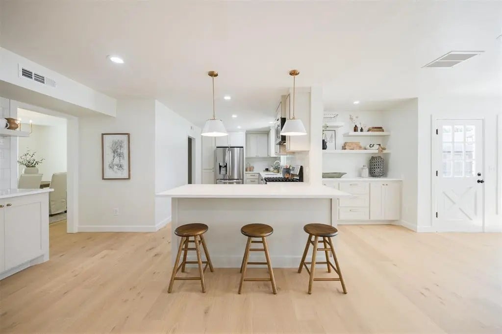 A remarkable renovation on Blue Sage Road in beloved Quail Creek! This home is whisked from a dream - featuring 5 bedrooms, 3.5 bathrooms, 2 living areas & a dedicated study- you couldn’t imagine a more functional floor plan. Simplistic elegance is found at every turn. A grand entrance showcases soaring ceilings, with a study to your right. Stunning light wood flooring covers the first floor of the home and lead you to the living areas & kitchen. A living space with a cozy fireplace at its center opens to an impressively renovated kitchen- featuring quartz counters, new cabinetry, stainless appliances and two separate nooks/hutches of additional cabinetry. A formal dining is found just adjacent to the kitchen, perfectly situated for hosting holiday dinners or game nights. The main living room is truly breathtaking; an alcove of light- offering views of a stately magnolia tree & lush backyard- and the amount of space is even better. This room is the heart of the home, where entertaining is effortless. The second level of the home is equally as alluring, with romantic finishes & lighting woven through. Three very spacious bedrooms enjoy access to a dreamy full bathroom. The expansive master suite showcases an enormous, versatile walk-in closet and fully renovated bathroom - with floating tub, double vanity & shower. An additional en-suite features two closets and a full bathroom. An amazing floor plan with so many uses, no matter your stage of life! Enjoy privacy and security compliments of the gated driveway - with additional parking out back, a lovely patio and ample green space. An extensive renovation comprising of upgraded mechanicals & every surface of the home refreshed and revived with timeless style & finishes. Impactful upgrades include new roof [2024], electrical wiring + panel [2024], all interior plumbing [2025], HVAC systems [2022], windows [2025], trim & baseboards throughout [2025].