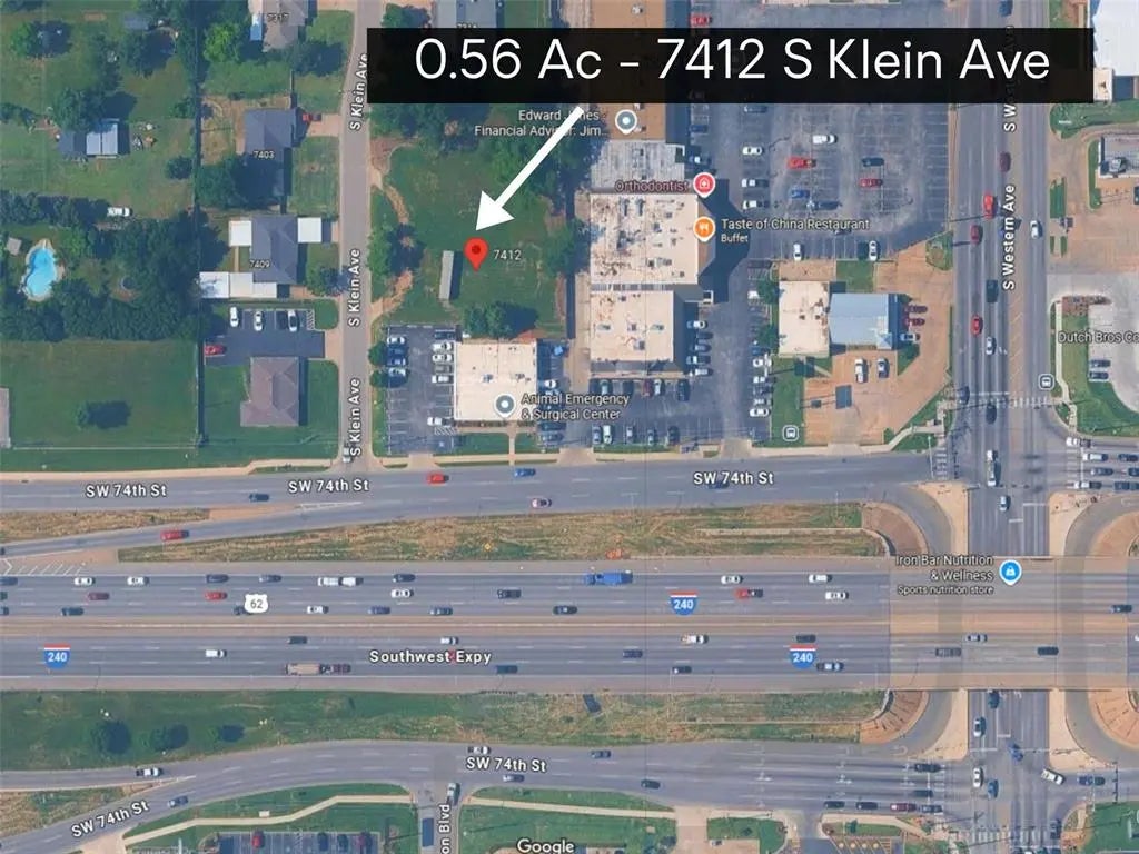 Commercial Lot – 0.56 Acres Near I-240 & Western | 7412 S Klein Ave, Oklahoma City. Position your business in one of South OKC’s most accessible locations! This 5.6-acre commercial lot offers outstanding visibility and quick access to I-240, making it ideal for a wide range of professional uses. Property Highlights: Flexible development potential, Includes large metal storage container on-site, Zoned O-2 Commercial with PUD – supports a variety of office, medical, and professional uses. - -Originally designed for a veterinary practice but adaptable for an office, medical clinic, or specialty business - -Convenient access to I-240, Will Rogers World Airport, and major South OKC corridors. Whether you’re planning a veterinary facility, medical clinic, professional offices, or a custom business headquarters, this lot provides the space and visibility to grow. With strong traffic counts nearby and easy highway access, this site is primed for development and long-term value.
