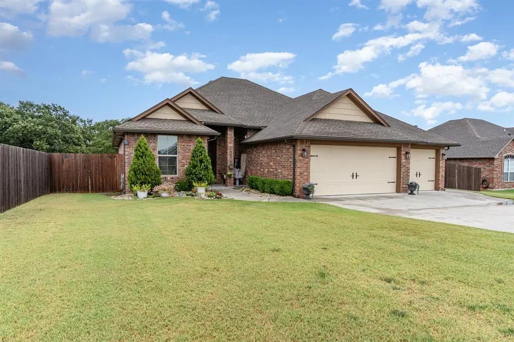 Immaculately maintained 3 bed home with a 24’x42’ metal shop, all sitting on a 1/2 acre lot in Bridlewood Ranch. Built in 2020, this 1,865 sq. ft. Open living with an electric fireplace. wood-look tile flooring throughout. The kitchen has granite countertops, large island, stainless appliances, and walk-in pantry. Master bath features dual vanities, soaker tub, walk-in shower, and closet with utility access. Spare bedrooms include walk-in closets. Office. large 3-car garage with insulated doors. Covered porch & back patio. Fully wrapped gutters. Privacy-fenced backyard. and a 24’x42’ spray-foam insulated metal shop with steel frame, 14’ walls, loft, 12’ covered approach, storm shelter, 200-amp service. The shop is on its own electrical meter. Backyard/shop accessible from Poplar Ln. Fiber internet is available. Within 5 miles of Blanchard schools & downtown, with quick access to Hwy 9 and I-35.
