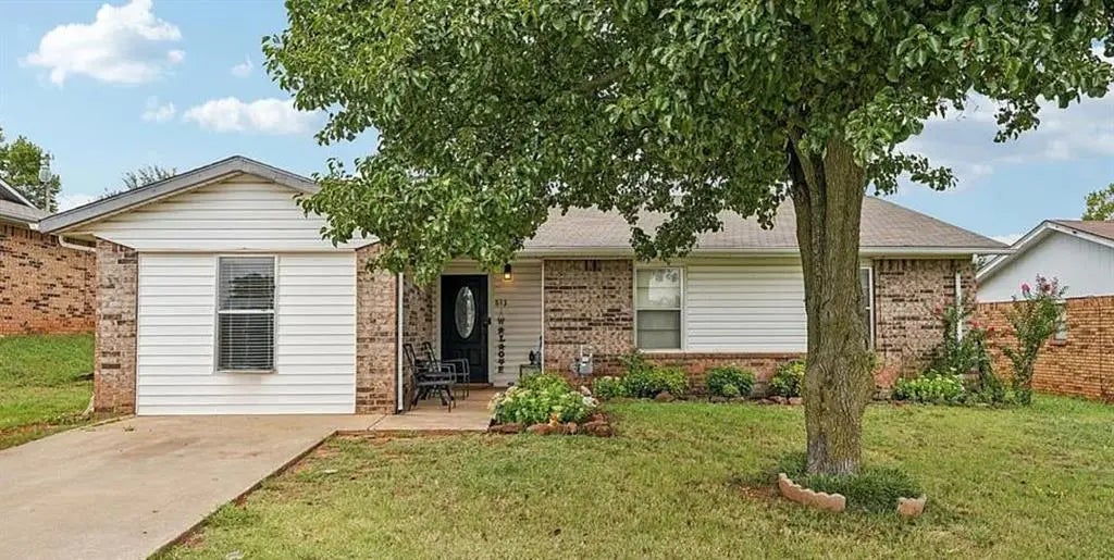 Welcome to Purcell. This brick beauty has the kind of curb appeal that makes you slow down with a big shade tree and fresh landscaping out front. You will love the best of both worlds here with quiet rural Oklahoma living and USDA loan eligibility while still being only minutes from Main Street, Walmart, restaurants, and highway access. Central heating and air, window unit is just a supplement! Step inside to a flexible split floor plan with room for everyone. Choose four bedrooms or three bedrooms with two living areas. The converted garage makes a perfect second living room, home office, or even multi generational suite with its own exterior door that makes it easy to come and go without disturbing anyone in the main part of the home. The main living room is full of charm with a rustic accent wall and enough space for an oversized sectional. The dining area flows into a kitchen that has been updated with granite countertops, warm wood cabinetry, and modern appliances. Down the hall you will find the secondary bedrooms, a guest bath, and the primary suite with its own private bath and walk in closet. Seller updates include fresh interior paint, new carpet in the living room, new fence panels, security cameras, and a modern doorbell system that will stay with the home after closing!