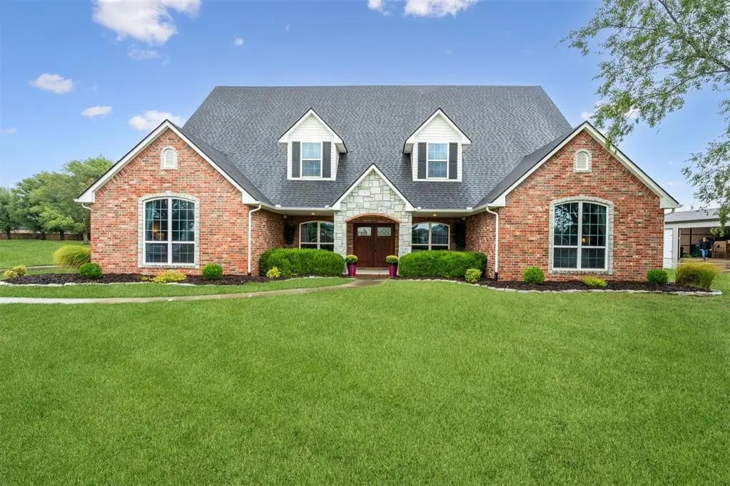 Discover this impressive 4–5 bedroom, 4 full bath home on an executive-sized lot of nearly an acre. Thoughtfully custom designed with soaring cathedral ceilings and three spacious living areas, this home blends elegance, comfort, and functionality. The main living room offers a stunning fireplace framed by floor-to-ceiling windows. Entertain with ease in the huge game room with bar or enjoy movie nights in the upstairs media room. Every detail showcases quality craftsmanship—red oak wood floors, travertine stone, granite and marble countertops, LED lighting, and a custom arched brick cooktop surround. The kitchen also includes a pantry and overlooks the expansive living areas, creating a warm gathering space. The private Owner’s Suite is a retreat, complemented by additional bedrooms that allow flexible use as a home office or guest space. Upstairs features all-new carpet and the home has been freshly painted throughout. Practical amenities include a 95% efficiency HVAC system, walk-in attic space, transfer switch installed to power the entire house with a portable generator, a private water well, and aerobic septic system. Enjoy the outdoors on your covered front and back patios—with a natural gas hookup for grilling so you’ll never need a propane tank again. Perfectly located, just a quick golf cart ride to Elks Country Club for golf or summer swimming. Easy access to I-40 puts you less than 30 minutes to Tinker AFB and only 34 minutes to OKC’s Bricktown entertainment district. This one owner home truly combines luxury living with everyday convenience—offering everything you need, and more.