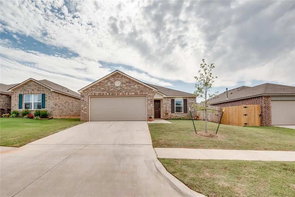 Come see this gem located in the highly sought after Yukon school district. Newly constructed in 2023, this home is like brand new. Upgrades include a fully fenced backyard with an extra wide entry gate, mounted water hose holders, all windows have 2" slatted blinds, additional shelf in laundry room, and a Rainsoft water filtration system. The smart home security system has remote access, along with driveway camera and doorbell camera that will notify you when people or packages arrive. The doorbell camera can be activated to protect your deliveries for over 12 hours. Driveway camera can be set to notify the owner of any activity around vehicles parked in the driveway. My Q garage door opener system with an in-garage camera, remote keypad entry, and smart phone access. Heavy duty mounted shelving and peg board storage in garage. Ceiling fans with lights in all bedrooms. The master bedroom fan has a remote for both the fan and the light. Living room fan has 3 speeds and a stained glass shade. Both bathrooms contain wall and handheld shower massagers in addition to mounted curtain rods. Brand new refrigerator included in the sale! The neighborhood features a beautiful playground and park area to unwind and enjoy. You won't want to miss out on this one!