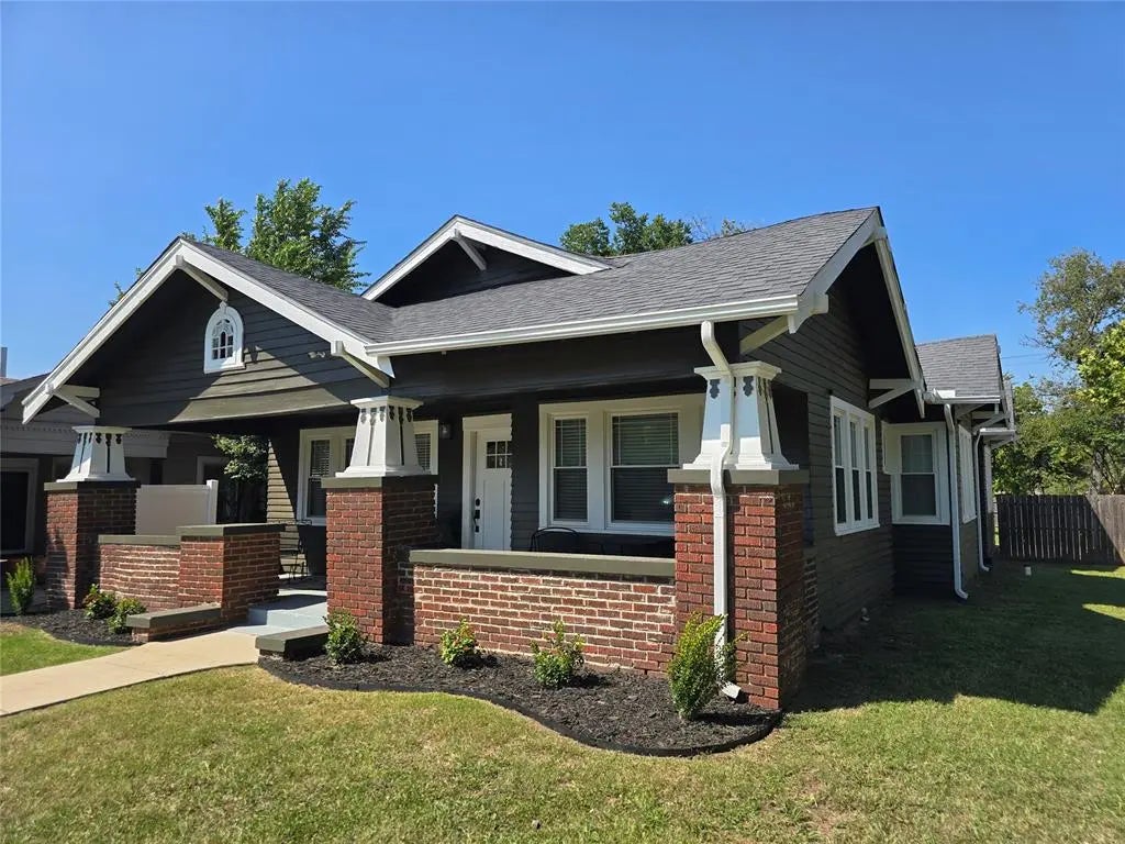 Nestled in the heart of the vibrant Military Park neighborhood, just minutes from downtown Oklahoma City, this beautiful completely renovated historic home offers the perfect blend of classic charm and modern comfort. Thoughtfully updated throughout, the home features three spacious bedrooms—large enough for king-sized beds and all offer ample closet space and inviting, stylish decor. The refurbished open-concept layout creates an effortless flow from the living area to the modernized kitchen, which boasts a large island with barstool seating, stainless steel appliances, modernized cabinetry with granite countertops creating the ideal area for both casual meals and entertaining. Both custom renovated bathrooms are spacious, stylish and offer plenty of storage. Outdoor living is just as enjoyable, with a charming front porch perfect for morning coffee and an expansive back patio made for evening relaxation. Privacy and peace of mind are built in, thanks to a fully fenced backyard and commercial grade security gate providing private gated parking. Plenty of space to add a carport for covered parking or a garage for additional vehicle protection, additional storage or other uses, ie workspace, home entertainment space or additional living areas, leaving ample backyard for pool, play and/or pets. Other updates include professionally restored wood floors throughout, HVAC, PEX plumbing lines, electrical lines, foam insulation under the entire house, and roof replaced in 2016. Whether you're looking for a forever home or an investment opportunity, this property is move-in ready and perfectly positioned in a neighborhood known for its energy, accessibility, and community feel. Experience the best of both worlds—historical character paired with modern upgrades—all just a stone’s throw from the heart of OKC.