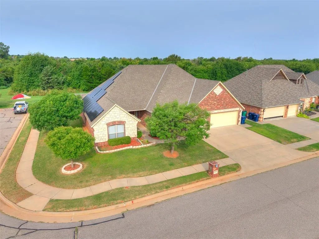 Welcome to St. James Pointe, a beautiful gated community located in the sought after Mustang school district. St. James Pointe is located close to a turnpike for a quick commute and it's only moments from the Will Rogers International airport. From the front door you are invited into a large spacious living room and gas log fireplace. The kitchen provides great features like a lot of usable counter space, a breakfast bar, stainless steel appliances and a walk-in pantry. Looking for storage or closet space? No problem! There are closets and cabinets all throughout the house. Next to the living room there is a generously large 5th bedroom/flex room. This room can be a large bedroom, office, theater room, nursery, you name it. It is large enough for your imagination. The split floor plan is great for privacy and relaxation in your primary bedroom suite on one side of the house with a view of the huge backyard that's located right in front of a peaceful greenbelt. The backyard brings you plenty of space for entertaining, gardening, a play area for the dogs, or adding a pool. For the electric vehicle drivers, there is a level 2 EV charger installed in the garage. Come take a look at your next home.