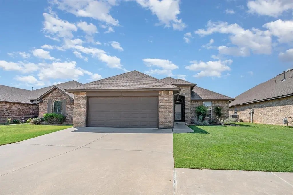 Excellent floor plan with open kitchen, living & dining. New carpet. Kitchen has granite countertops, large island, walk-in pantry. Good size living with Fireplace. Pocket office off the entry. Primary suite & bath has marble vanities, double sinks, garden tub, separate shower and walk-in closet. Large utility. Covered patio, landscaped w sprinkler system. 3 car tandem garage for extra storage.