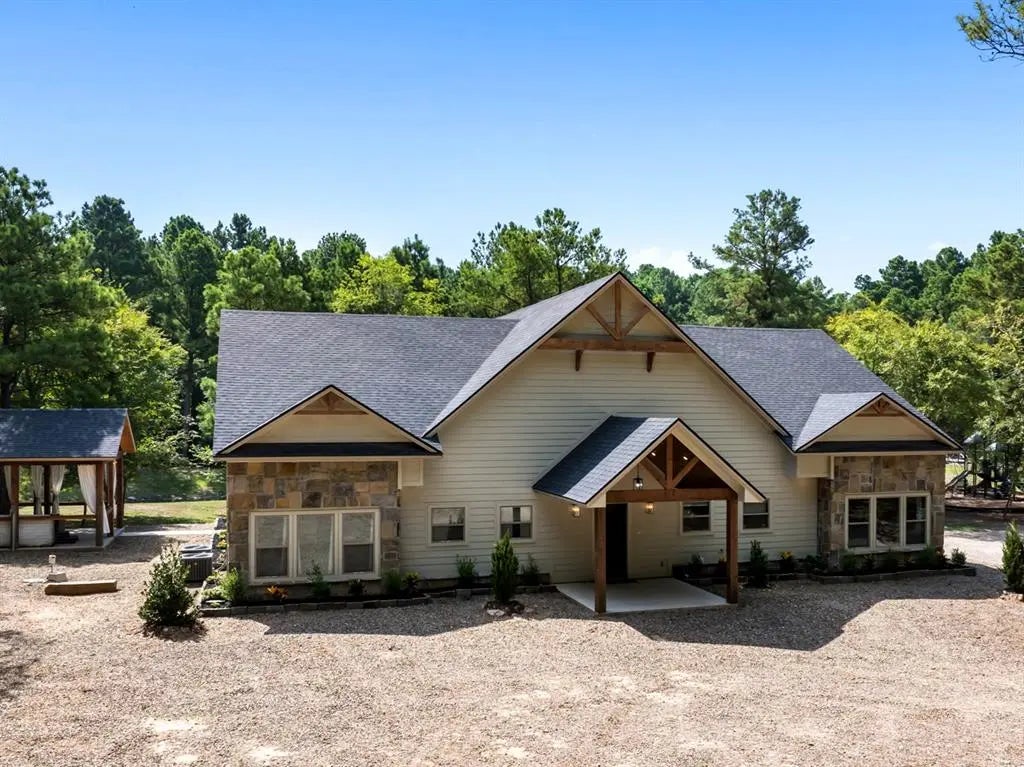 Riverbend Retreat is conveniently nestled in the Pine Lake development next to the Resort clubhouse. Easy access to the clubhouse, pool, playground, and family-style grill. This cabin features 3 King bedrooms with private ensuite bathrooms and walk-in showers, while one of the ensuites also provides a luxurious soaker tub. The bunkroom with private ensuite bathroom also boasts 2 queen beds, a loft with King bed and 2 additional queen beds. Riverbend Retreat sleeps a total of 16 guests! The open design living and kitchen with high ceilings provide plenty of natural light. The kitchen is a chef's delight with stainless steel appliances such as gas range and large refrigerator. Gather around the island with seating for 4 or at the table with seating for 8. Kickback in the living room and catch up with shows or company around the gas fireplace. Step outside onto the covered patio where seating is abundant. Watch the flowing creek or enjoy catch and release fishing at the pond. The hot tub beckons to relax those muscles after a day of exploration and swimming. This cabin is located a short drive from Beaver's Bend State Park or all of the action in Hochatown. Take a look at the video tour and reach out for more info!