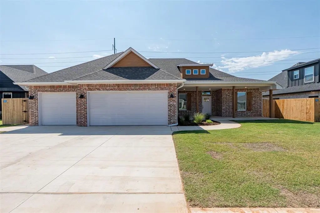 Come and see the latest stunning home from one of the metro's premier builders, Griffin Homes! This beautifully crafted property showcases thoughtful design and high-end finishes throughout. With 3 bedrooms, a dedicated study, and 2.5 bathrooms, it perfectly blends functionality with modern elegance. Whether you're working from home, hosting guests, or simply unwinding, this home offers the ideal space for every part of your day. Upon entry, you’ll fall in love with the open-concept floor plan, featuring soaring ceilings, a striking brick fireplace, and an abundance of natural light. The kitchen is a showstopper with floor-to-ceiling custom maple cabinetry, 3cm white quartz countertops, and an enormous walk-in pantry! The primary suite is an oasis, offering double vanities, a jetted tub, a massive walk-in closet, and even built-in Bluetooth ceiling speakers! Step outside to a spacious covered patio, perfect for entertaining or enjoying a peaceful evening outdoors. Additional features include gorgeous wood-look tile in all living areas and study, custom lighting package with ceiling fans in all bedrooms, full gutters, sprinkler system, and 2" blinds on all windows!
