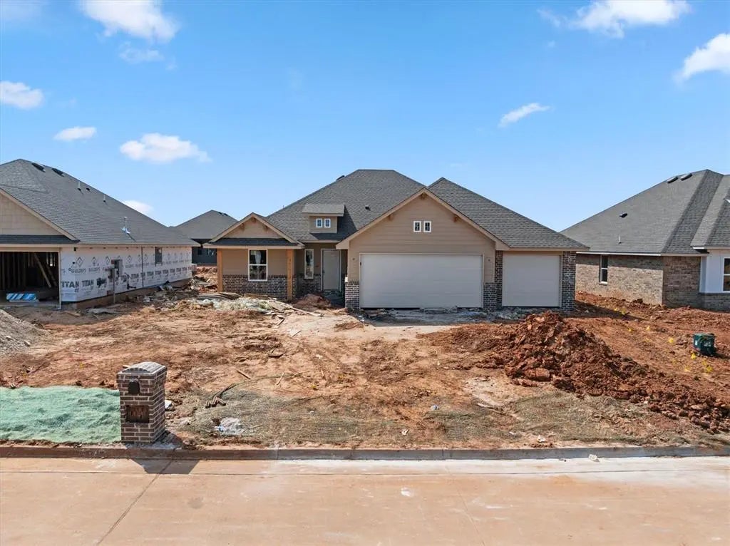 Introducing The David Plan—a masterfully designed home that blends contemporary architecture with modern conveniences, creating a residence that is as functional as it is beautiful. From the charming craftsman-style exterior to the thoughtfully curated interior finishes, every detail has been designed to inspire. Step through the entry into a breathtaking living room, where soaring ceilings and oversized picture windows fill the space with natural light. A sleek, designer fireplace anchors the room, offering both warmth and sophistication, while the open layout creates an effortless flow for both everyday living and entertaining. At the heart of the home, the chef-inspired kitchen offers everything you’ve been dreaming of—an oversized island with counter seating, designer tile backsplash, a generous walk-in pantry, and premium stainless steel appliances, including a gas range. Overlooking both the Great Room and dining area, it’s the perfect space to connect with family or host gatherings with ease. The private primary suite is a true retreat, featuring a spa-like bath with dual vanities, a freestanding soaking tub, a walk-in shower, and an expansive closet. Designed with privacy in mind, the split-bedroom layout includes two large secondary bedrooms and a beautifully appointed bath, while a dedicated home office (or optional 4th bedroom) near the entry provides flexibility to suit your lifestyle. Modern elegance is found throughout with a neutral color palette, exquisite tilework, and designer lighting—allowing you to personalize the space and make it your own. The David Plan represents the perfect harmony of timeless style and everyday comfort, offering an elevated living experience in every detail. Sprinkler System included. Welcome home.