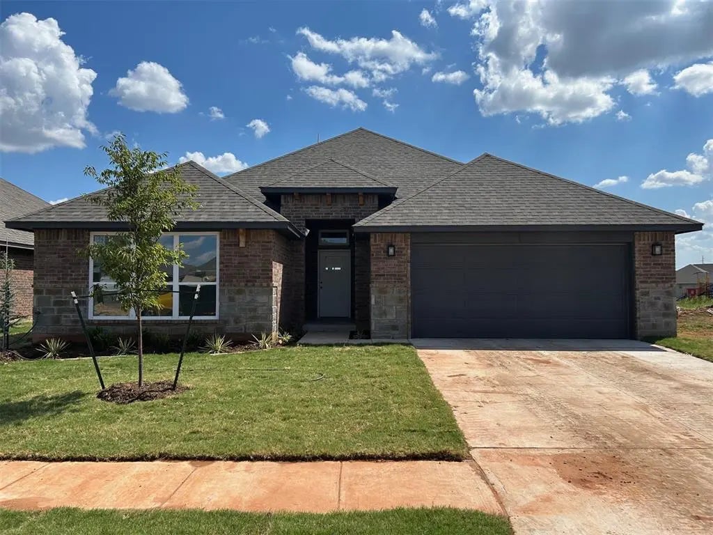Beautiful home with so many included features! As you walk in you see the attention to detail with the stunning barrel ceiling leading from the entry to the living room. Wood tile flooring in all of the main areas. The living room is large and has a wonderful wood and tiled fireplace. The kitchen features a large island, thick quartz tops, custom cabinets, under cabinet lighting, farm sink, stainless steel Samsung appliances, led lighting, decorative vented hood and more! The primary bedroom is very roomy with a tray ceiling. Primary en suite is also quite spacious with a long two sink vanity, walk in tiled shower, garden tub, water closet and large closet that connects with the utility room. Both spare bedrooms are big as well. Very energy efficient home so lots of savings on utilities. This home backs up to an HOA maintained common area, providing extra space and privacy. Neighborhood amenities include a large playground, pool and clubhouse with fitness center and gathering hall!