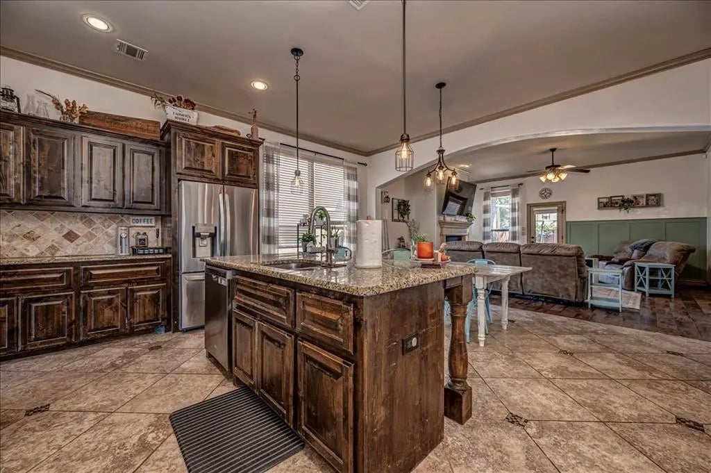 Assumable at a 2.25% interest rate! Welcome to this beautifully maintained 4-bedroom, 2-bath home in the sought-after Council Ridge addition of Edmond! Featuring an open floor plan with wood-look flooring, updated lighting, and stylish farmhouse accents, this home is move-in ready. The spacious living area flows seamlessly into the kitchen and dining, making it perfect for entertaining. A versatile study/flex room with custom barn doors offers extra space for work or play. Updates include a new roof (2020), fresh paint, upgraded hardware, and modern fixtures throughout. Outdoors, enjoy a covered patio, fenced yard, and an unground storm shelter. Located in the highly regarded Deer Creek School District, with neighborhood amenities including a pool, clubhouse, and playground. Convenient to shopping, dining, and major highways — this one checks all the boxes!