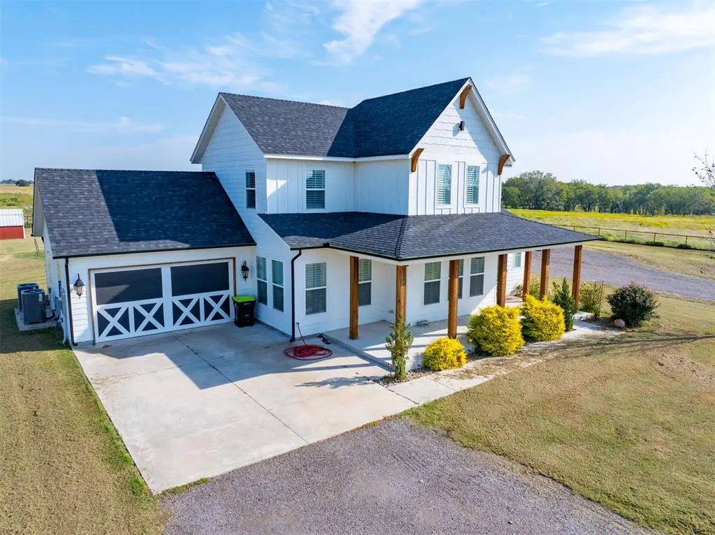 What a unique opportunity to own a modern farmhouse on 40 acres (MOL)! The property was recently active for cattle and equine with a roping area and some fenced and cross fenced pastures. The home, built in 2022, is quite lovely with a classic farmhouse look at first glance featuring a front porch that spans the full width of the home! Inside tells a different story, with the modern amenities and luxury features that should be enjoyed in the country, not just the city. Upon entry, the floorplan is open offering plenty of windows that invite loads of natural light and are finished out with custom plantation shutters. There are numerous high-end finishes throughout the home, such as oak hardwood floors, a solid wood fireplace mantle, custom kitchen cabinets W/ custom drawers, stainless appliances plus a warming oven & ice maker, AND gorgeous granite counter and island tops in the kitchen. The Primary suite is on the lower level and offers plenty of space for your furnishings and a spa-like bath with a large shower and walk-in closet. The laundry is pass-thru to the primary suite walk-in closet and a mud room with exterior access off the kitchen. The upper level offers a good size media/game room space and 3 additional bedrooms, 2 of which have bathrooms and walk-in closets. With a 2 car attached garage, plus a 40'x40' shop with 3 overhead doors, and a 20'x40' carport area off the shop, there is more than enough room for your equipment, boat, RV, or what other toy(s) you might need to keep out of the weather. To complete this package, there are 2 ponds on the property, a chicken coup and gardening area that is ready for your green thumb! Come see this paradise and you won't want to leave!