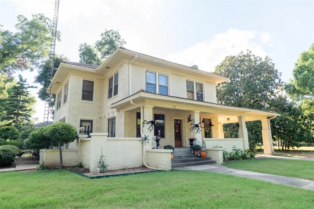 In the heart of Pauls Valley this colonial style house, on a large corner lot, with a historical tree studded brick street is ready for its new owners. After entering through the amazing covered porch inside you will find the living room with fireplace, built-in shelving and original wood flooring, formal dining room with chandelier leading into breakfast nook and galley style kitchen . The kitchen has built-in china cabinet with pass through to dining room. Enter the full basement through the kitchen or stairwell in backyard. This 2724 Sg Ft 2 story house, with 4 large bedrooms upstairs with option of 5th bedroom on 1st floor, has amazing custom crown molding woodwork and abundant natural light throughout the house with 10' walls. These are just a few of the many special features. A full bathroom upstairs and half bath downstairs near the kitchen. Drive through the covered parking to the matching detached 1-car garage or work shop with ally way access to backyard for RV parking. Mature trees offer shade around the home with partially fenced backyard for pets and ample space to garden. The main sewer line from the house through back yard to city sewer has been replaced with new water heater. All of the exterior has new paint and gutters and down spouts have been added and replaced. The house is walking distance to downtown, schools, park and churches. Don't miss the chance to own this incredible house and schedule your private showing today.