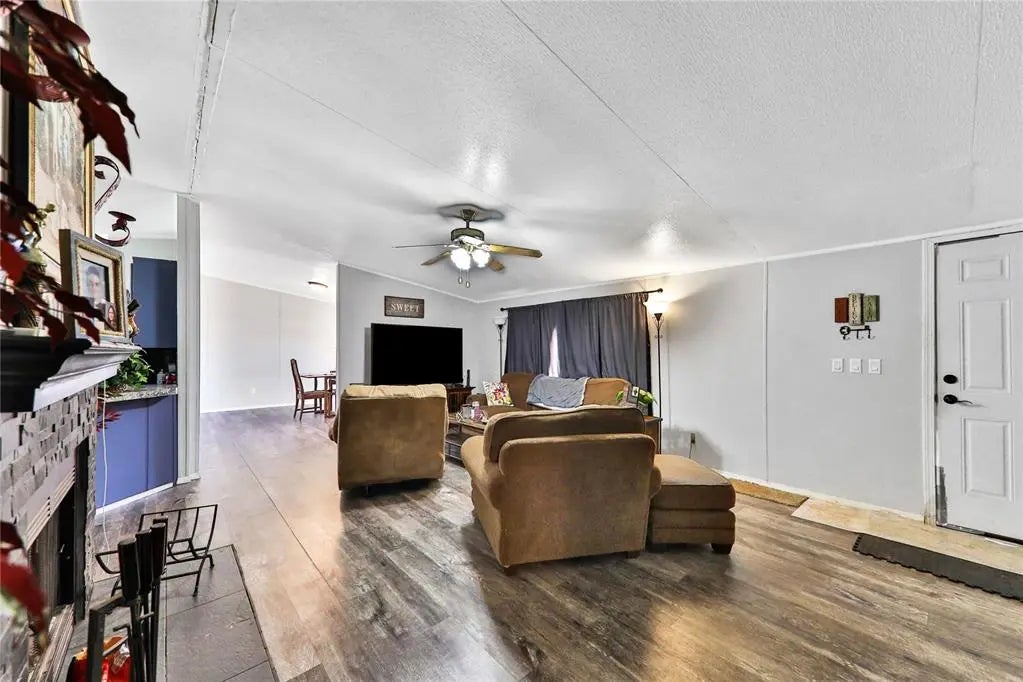 Enjoy quiet country living on unincorporated land within a short drive of city amenities. This manufactured home is a 2000 model 2000 square foot Fleet home. Offering a cozy three bedrooms and two bathrooms, this house also boasts a large welcoming kitchen perfect for family gatherings. Complete with a wood burning fireplace, spacious laundry room, and open floor plan this house is ready to be made a home..