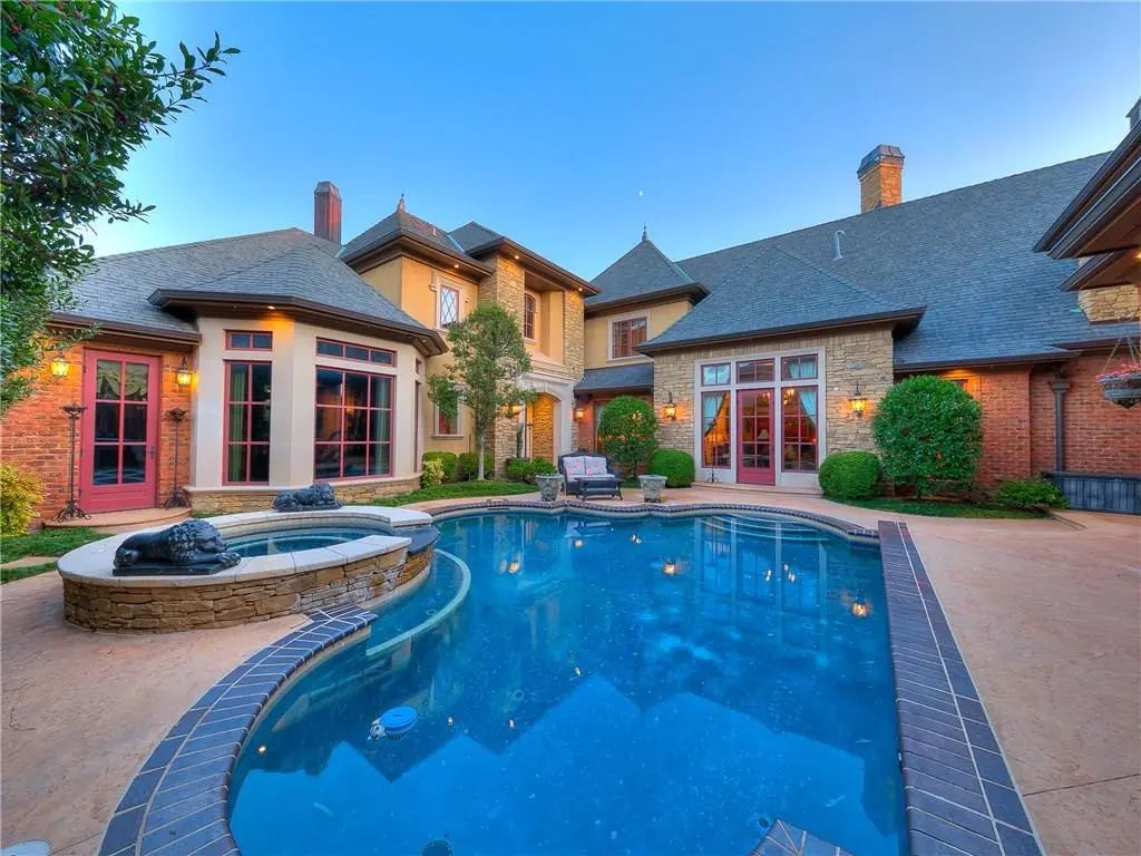 Stunning! A one-of-a-kind European-style home in one of Oklahoma City’s most sought-after neighborhoods. This entertainer’s dream home features a chef’s kitchen with three dishwashers, a huge pantry, commercial gas range, two sinks, instant hot and cold, warming drawer, seating at the massive island for 6, an informal dining area all open to the expansive living room with a stone fireplace. Four bedrooms under roof plus a multi-use casita by the pool with a full bath, kitchenette, and walk-in closet. The master suite faces the lake and features a separate sitting room with fireplace, two large walk-in closets, and separate vanities and toilets. Two staircases, an elevator, a theater and game room, multi-purpose computer/play room, exercise room with mirrors on three walls, home office with built-ins galore, an aboveground safe room, two laundry rooms, plus walk-in attic. The formal living room features a two-story cast stone fireplace with built-ins and floor to ceiling windows with lake view. Windows flood the home with natural sunlight. A pool sits in the courtyard, surrounded by lush landscape and an outdoor kitchen. A second patio faces the lake and features cast sone columns and an outdoor gas fireplace. Above is a lovely balcony overlooking the lake. The four car oversized garage features stained and etched concrete floor, two mini-splits, large sink, tons of built-in cabinets and counters, speakers, ceiling fans, and space for a second refrigerator, a safe, a freezer and an ice maker. This home is also energy efficient with geothermal and blown insulation.