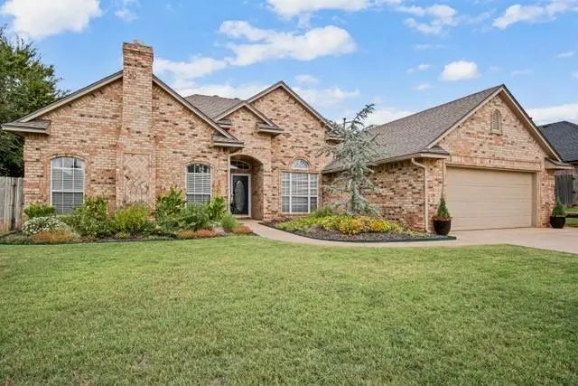 Beautiful Edmond home has three bedrooms plus office, hardwood floors in living and office, updated kitchen and a large covered back patio as just a few highlights. Brand new roof in 2023, fresh paint throughout, and updated fixtures. The Primary Suite has patio access and features an Australian walk-thru closet, large jetted tub with separate shower and double vanities. Grand living room with fireplace, surround sound and gorgeous light. The eat-in kitchen with breakfast bar has been updated with granite, an island and an incredible amount of storage with pull out shelving. The tall ceilings, brick accents, pillars and arches bring so much character to this home. The office is light and bright with wainscoting accent. The backyard has a wrap around covered patio with sun screens so you can enjoy all day long. Sheffield Glen has a neighborhood pool with cabana and playground that is within walking distance from the home. Easy access to shopping, restaurants, and entertainment as well as I-235.