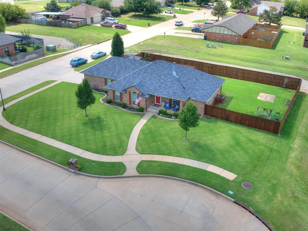OPEN HOUSE SUNDAY 9/28 2-4 PM Incredible Shannon Place Home on Double Lot! This beautifully updated three-bedroom, two-bath home sits on a spacious double lot next to an open field and just steps from the park in a highly desirable Shannon Place neighborhood. Inside, you’ll find a spacious living area with wood look flooring, large sunny windows, and a cozy fireplace. The completely updated kitchen features quartz countertops, subway tile back splash new appliances, new sink, breakfast bar, and pantry. The split floor plan offers an oversized master suite with a large closet, jetted tub and a fully renovated walk-in shower. Secondary bedrooms are generous in size with ample closet space. Newly updated guest bath!! Step outside to enjoy the New fully fenced backyard with an oversized patio, extra concrete for additional space, pergola—ideal for outdoor living. Additional features **STORM SHELTER** New hot water tank, Sprinkler system, storage shed, central vacuum system, full guttering, garage sink, and an oversized garage that easily fits a full-size truck. Conveniently located within award-winning Mustang Schools, minutes from the airport, FAA, Hobby Lobby, Tinker Air Force Base, downtown OKC, I-40, the turnpike, shopping, and restaurants. This home truly has it all—schedule your showing today! **DOUBLE LOT NOT 2 ACRES TAX RECORD ERROR**