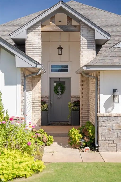 This beautiful home is filled with thoughtful details and designer touches! A vaulted barrel ceiling greets you and flows into the spacious living room, where the wood and slate fireplace serves as the focal point. The open concept kitchen is great for entertaining and features custom shaker cabinets, quartz countertops, a large farm sink, under-cabinet lighting, and a generous island painted in an accent color for a pop of personality. The primary suite is oversized and features a tray ceiling, while the spa-like bath offers a walk-in shower, enclosed toilet, and a large closet with 10’ ceilings and seasonal storage. Throughout the home, you’ll find white painted cabinetry, upgraded lighting, and tasteful paint colors that bring warmth and character. Outdoors, enjoy the long covered back patio and beautifully landscaped front yard, accented with wildflowers for extra charm.