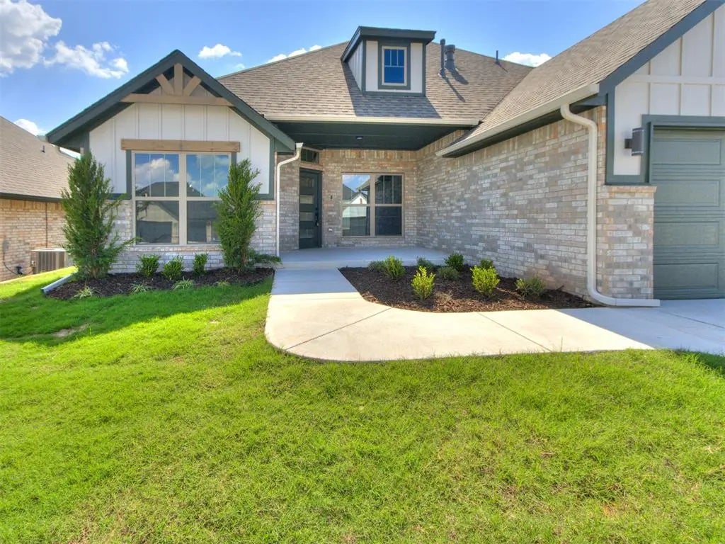 Welcome to your new home! This home has charming curb appeal with a welcoming front porch and thoughtfully landscaped yard. The floor plan is open and airy with lots of natural light. The living room has a beautiful recessed ceiling with wood beams and a stunning floor to ceiling custom fireplace. The kitchen is equipped with quartz countertops, stainless steel apron front sink, custom vent hood, whirlpool appliances and an extra large walk in pantry. The utility room features a custom mud bench and is conveniently attached to the master closet. The luxurious master bath offers a spa-like retreat with jetted tub, walk in shower, dual vanities and elegant finishes. Also, you can enjoy the outdoors in comfort with a covered patio that provides shade in the summer and shelter for rainy days. BUILDER INCENTIVE $5,000 to be used towards rate buy down, closing costs or select upgrades with preferred lender.