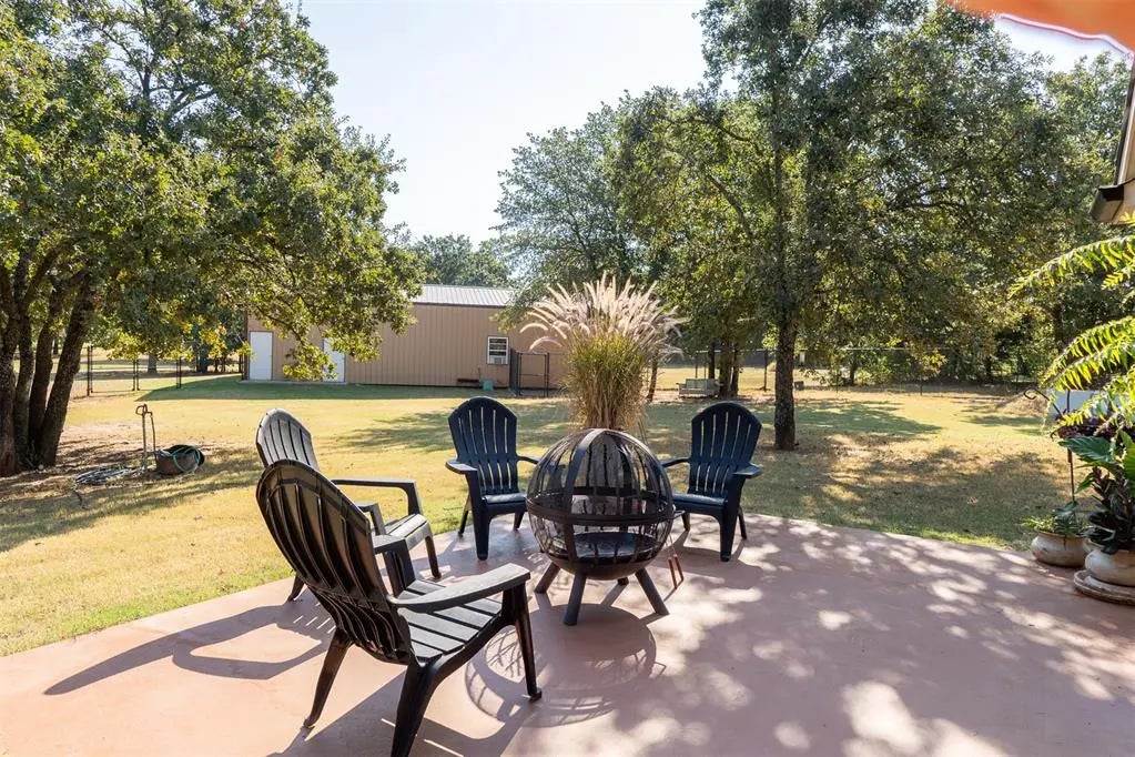WELCOME HOME!! COME ON IN & KICK YOUR SHOES OFF-YOU'LL WANT TO STAY AWHILE!! Large ,Open & Flowing living/kitchen & dining. Several nice features in the Living room are the ventless, electric fireplace, recessed lighting, surround sound, bullnosed corners, built in & lighted shelving. Kitchen has a large quartz island, SS appliances (fridge does not remain), and a corner pantry. Master bedroom has sliding barn doors opening to the master bath with walk-in tiled shower, huge master closet and a soaking tub with TV for your "Calgon take me away" time. Utility room is oversized, has sink & cabinets. Take your iced tea to the covered back patio & enjoy the shaded & wooded yard with nothing noisy but the Oklahoma locusts. The metal SHOP is 30x50 plus a 600' lean-to, concrete floor, window unit, & overhead door. Utilities are OG&E, Rural Water #4, has aerobics system.