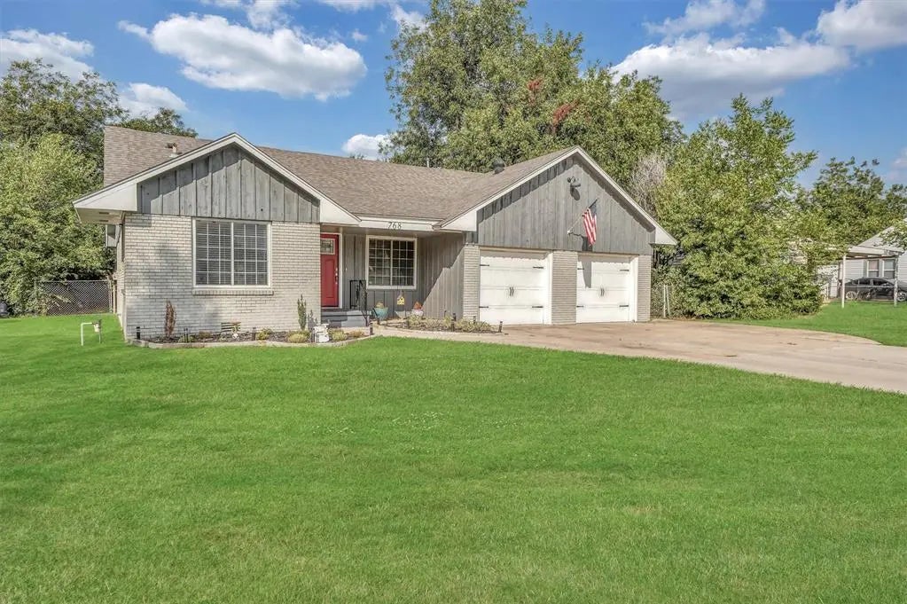 This charming property features a long driveway leading to a generous two-car garage, offering plenty of parking space. A welcoming sidewalk lined with a flower bed guides you to the covered front porch.