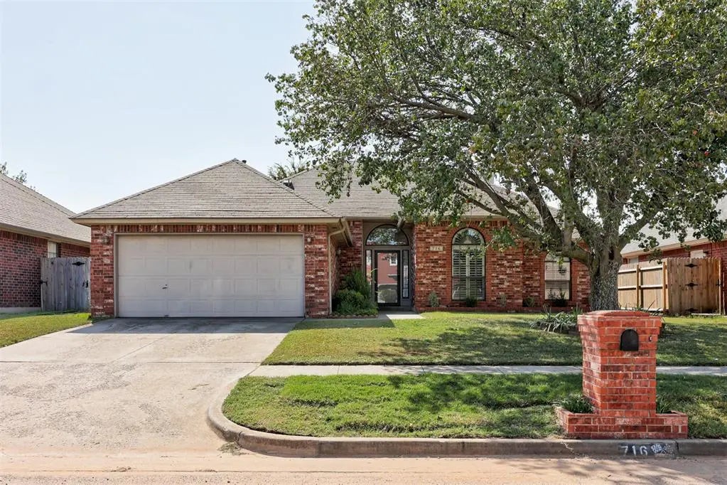 Welcome to 716 SW 154th St! Located in Moore School District, minutes away from major highways, grocery stores, shopping, and more, this conveniently and well kept home boasts 3 bedrooms and an additional office, and 2 full bathrooms. Step inside to an oversized living and dining area, with granite counter tops in the kitchen and a beautiful brick fireplace to the ceiling. Walk into the primary suite to an oversized bedroom, plantation shutters on the windows, and an updated bathroom, with double vanity sinks and a walk in closet. Love the outdoors, but hate the bugs? Then this house is for you. Step into the backyard to find an enclosed sun room, perfect for early morning coffee or late afternoon tea to enjoy the birds and the sunshine. Added safety features include an in ground storm shelter in the garage. Added bonus is an interior laundry room, freshly painted walls, and brand new carpet. With plenty of room to grow, this home is waiting and ready for you!
