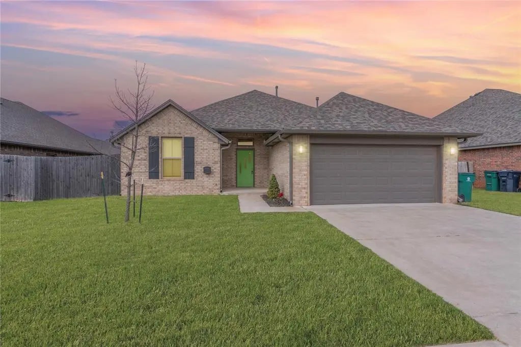 Welcome to this gorgeous, modern home in a highly desirable Yukon location, offering easy access to OKC for a fast commute. The wide-open floor plan is flooded with natural light and features tall ceilings and elegant crown molding throughout the main living spaces. The kitchen is a chef's delight, boasting all-white cabinetry, solid surface countertops, modern fixtures, a large island, stainless steel appliances, and a gas stove. A perfect dining space sits adjacent to the kitchen for effortless entertaining. The primary suite is a true retreat with a full en-suite bath, dual sinks, a standing shower, and a large walk-in closet. Secondary bedrooms are a great size and are perfectly situated next to the guest bath. Outside, you'll love the large covered back patio and fully fenced yard, offering tons of space for relaxation and play. This stunning home truly ticks all the boxes, so reach out for your private viewing today!