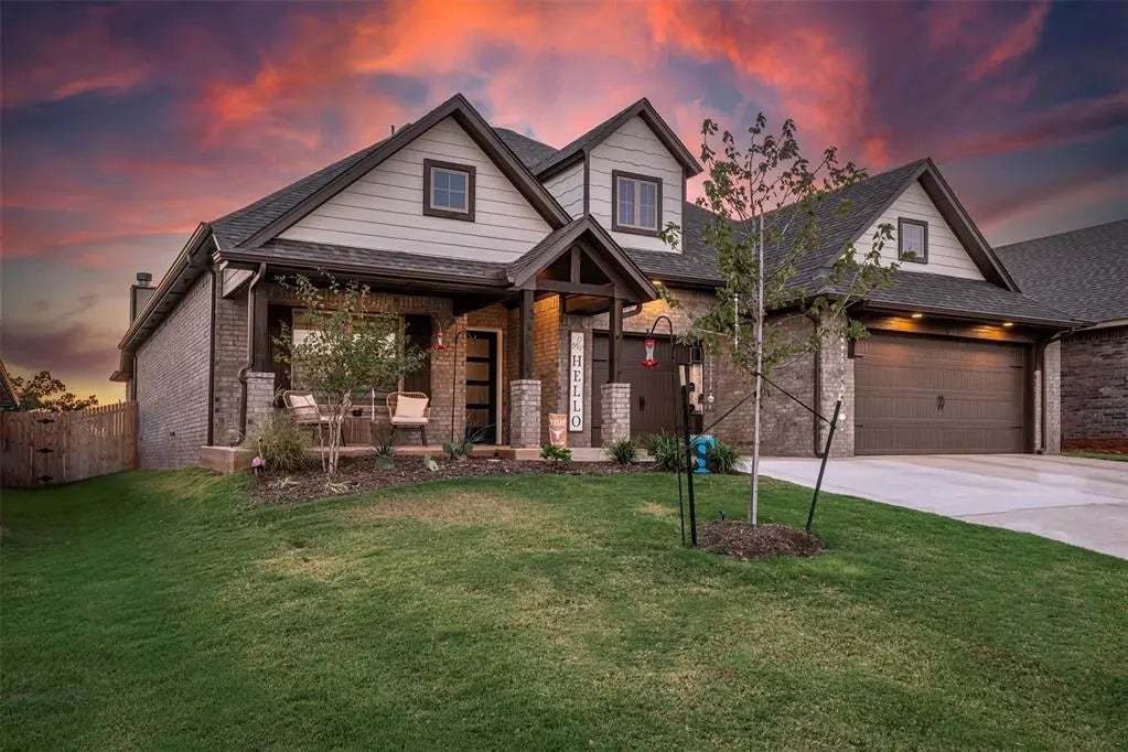 Better Than New & Loaded with Upgrades! This stunning, move-in-ready Shiloh Bonus plan has it ALL—and then some. This home boasts 2,450 square feet featuring 4 bedrooms, 3 bathrooms, 2 covered patios, a large 3-car garage with a storm shelter, AND a large bonus room. This home is a perfect blend of luxury, comfort, and smart design. Step into the spacious, open-concept living area, featuring a coffered ceiling, gorgeous wood-look tile floors, a stacked stone surround center gas fireplace, beautiful windows, and a charming barn door that leads to the secondary bedrooms, bathroom, and laundry room. The kitchen is a chef’s dream, featuring custom-built cabinets to the ceiling, beautiful tile backsplash, built-in stainless steel appliances, a walk-in pantry, a trash can pullout, and stylish pendant lighting over a huge center island. Perfect for bringing everyone together!
